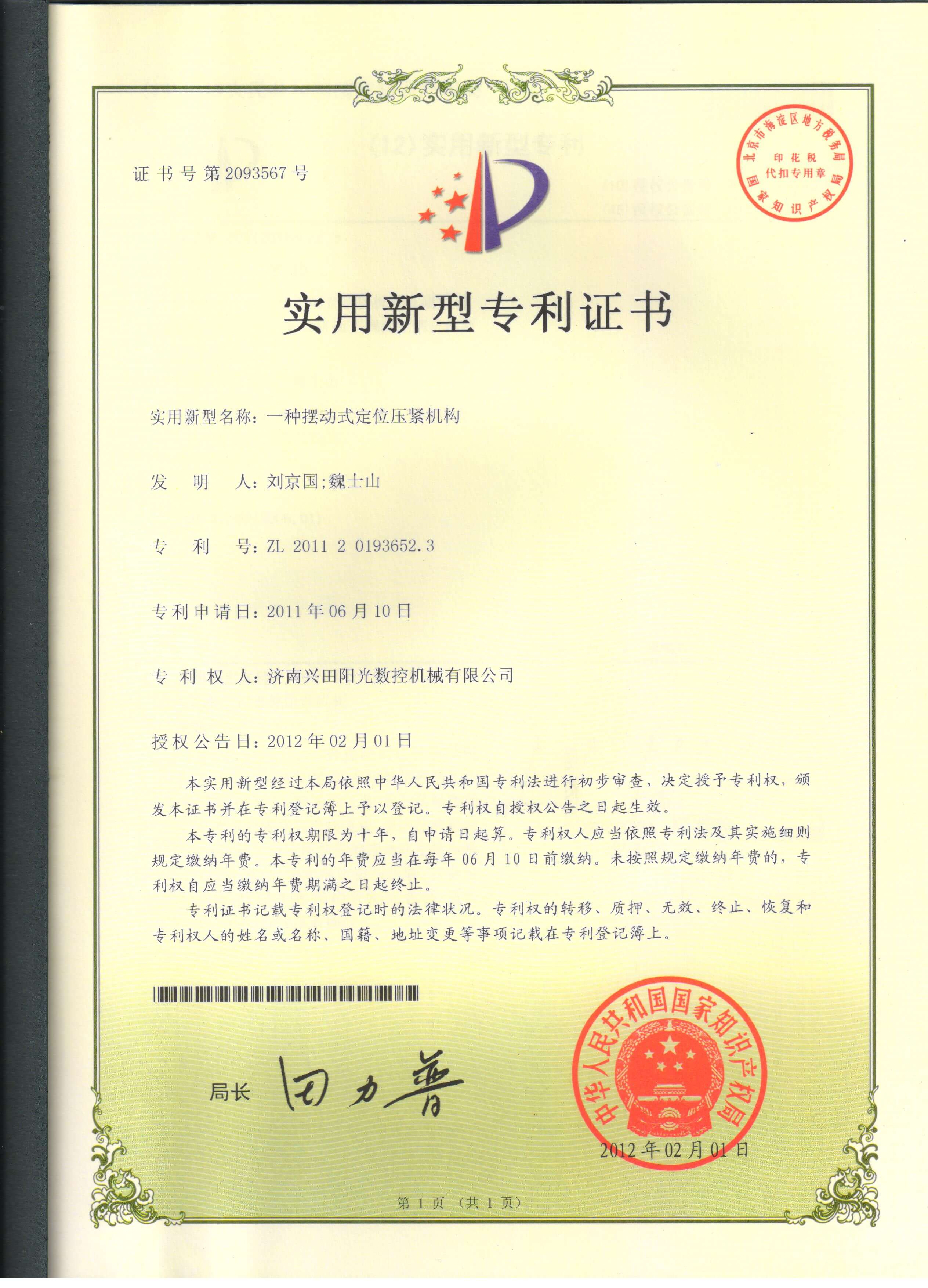 • 專利證書